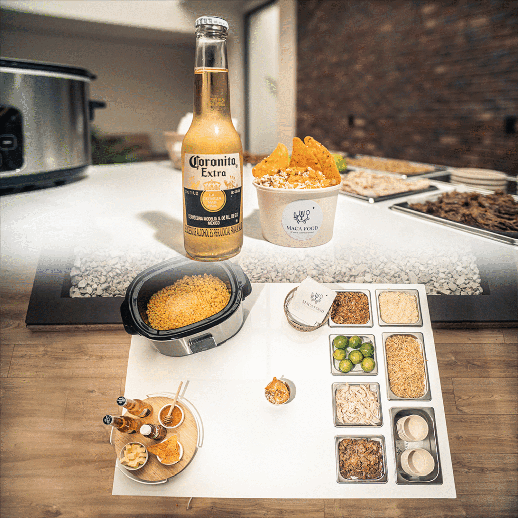 Tex-Mex elevado al máximo nivel. Totopos crujientes con guacamole, queso fundido, carnes, frijoles y toppings variados. Presentación moderna y opción vegetariana. Perfecta para eventos temáticos o encuentros informales con estilo.